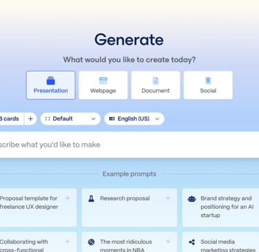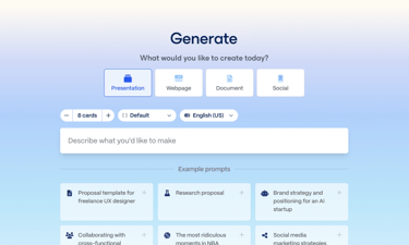 Lightning Speed: Just enter a prompt (your topic), and Gamma generates a fully designed presentation right before your eyes.